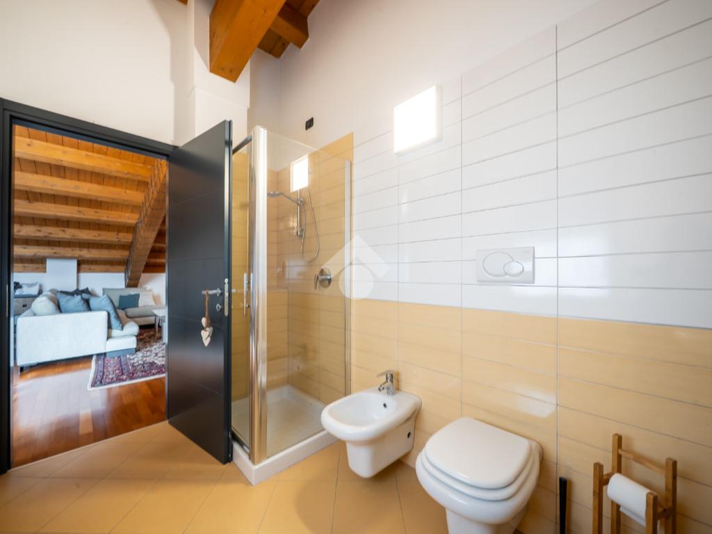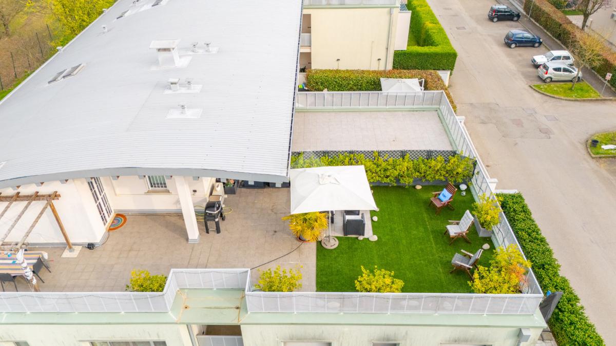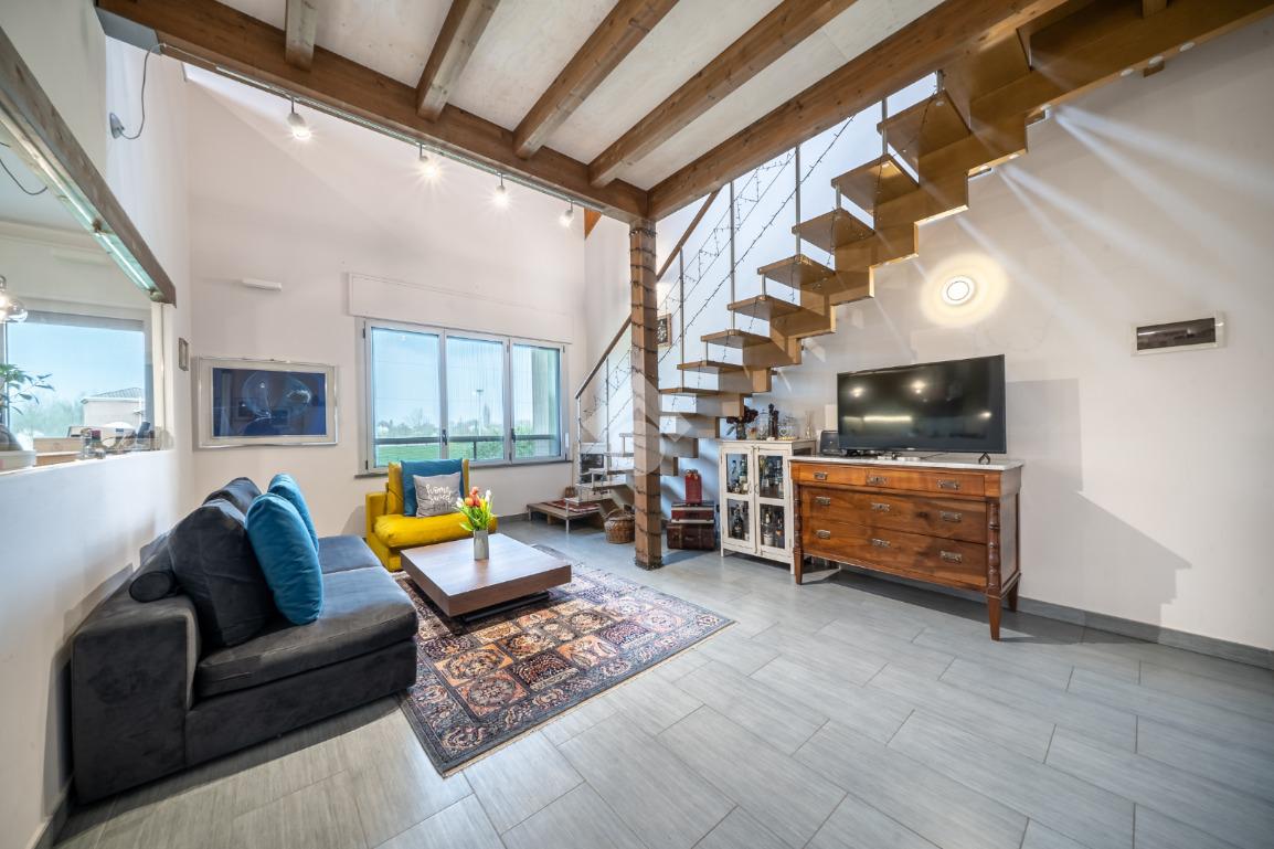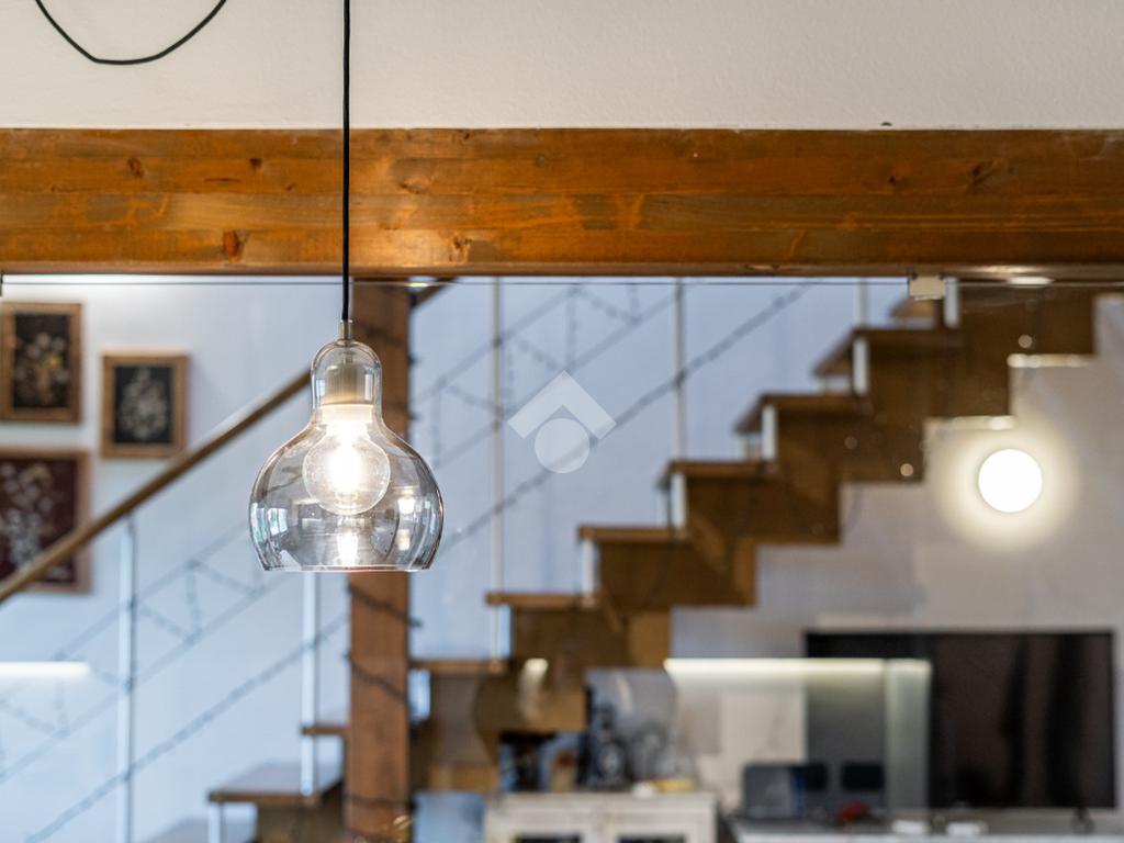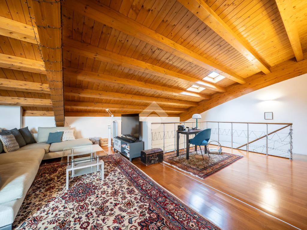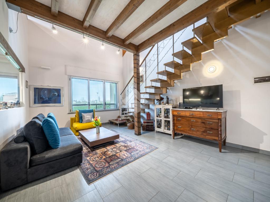 Salendo al piano superiore troviamo un ambiente open space con travi a vista e soppalco con vista sul soggiorno, un terzo bagno con doccia e l’elemento più esclusivo della proprietà: uno straordinario terrazzo panoramico di circa 100 mq, uno spazio raro e riservato, ideale per momenti di relax o convivialità all’aperto.