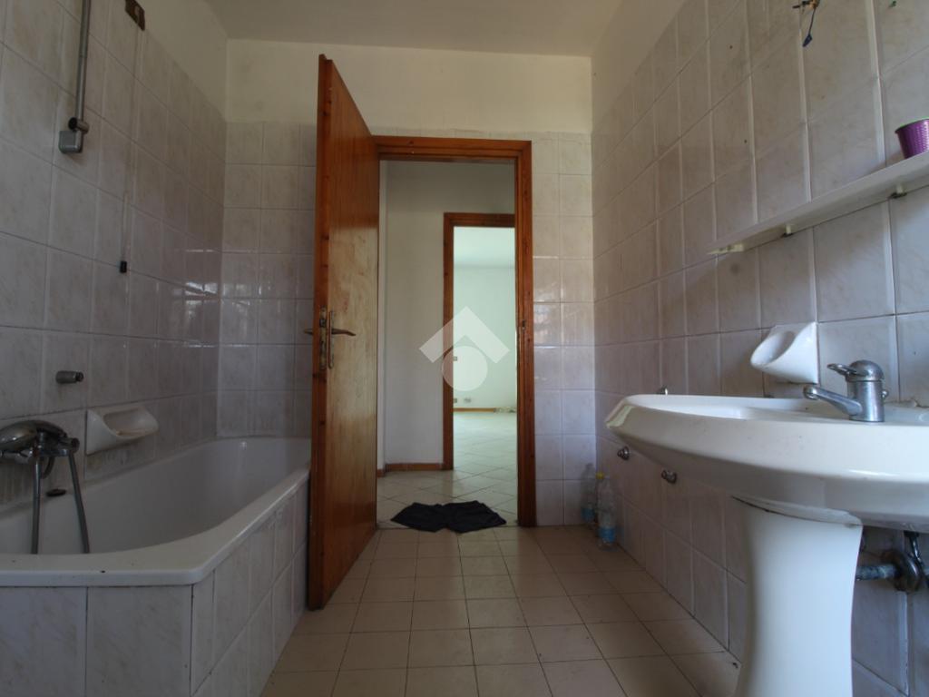 Proseguendo al primo piano, troviamo la zona abitativa, composta da ingresso su soggiorno con balcone, una cucina separata, un disimpegno notte con ripostiglio, una camera matrimoniale, una camera tre quarti ed un bagno.