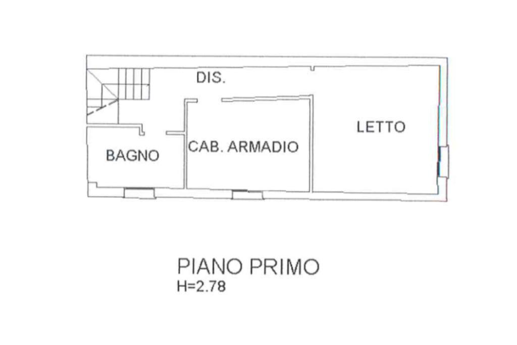 Proseguendo al primo piano troviamo un disimpegno notte, un bagno con doccia, una camera matrimoniale ed una camera tre quarti.
