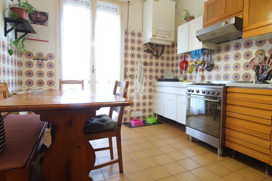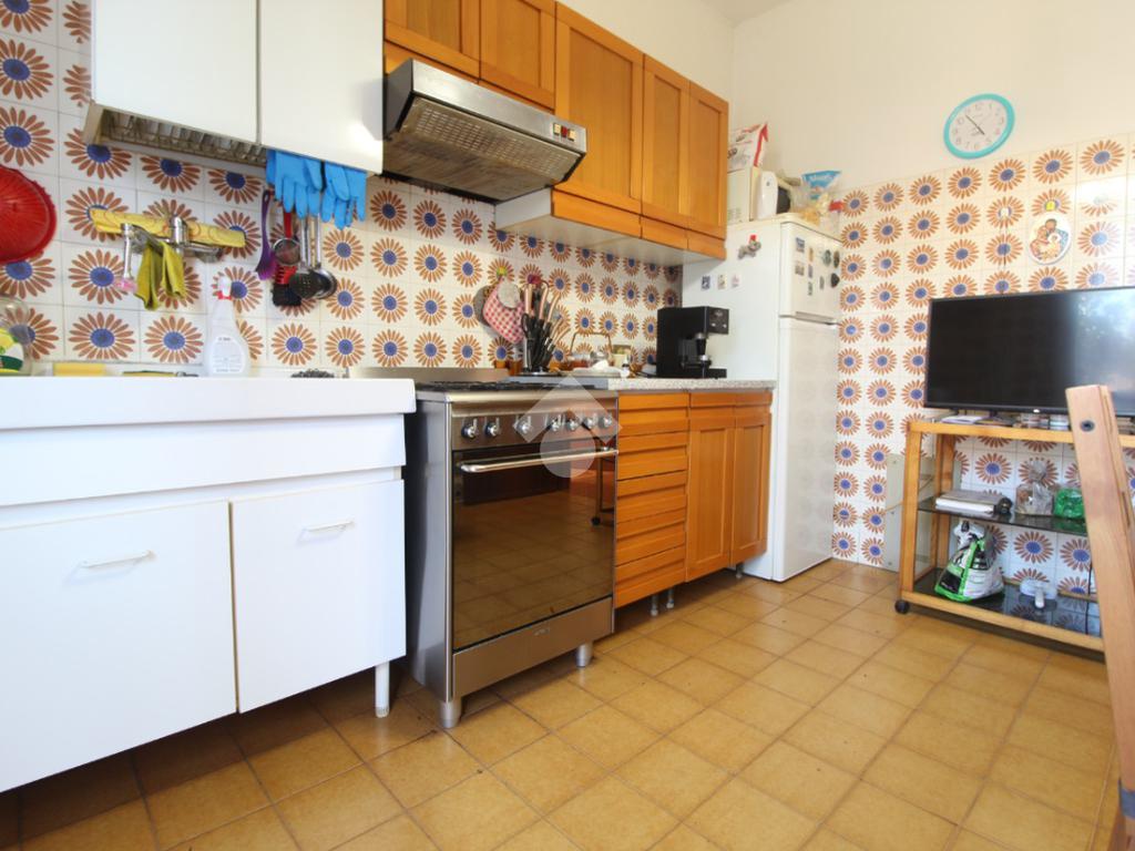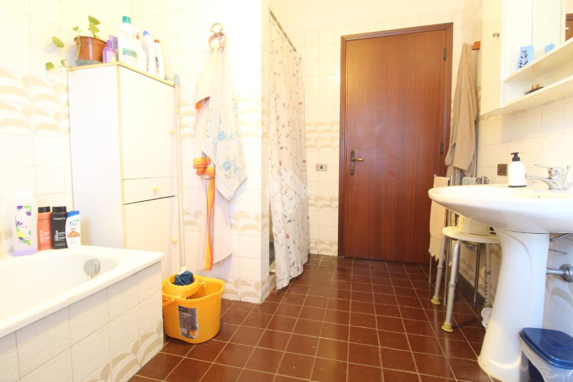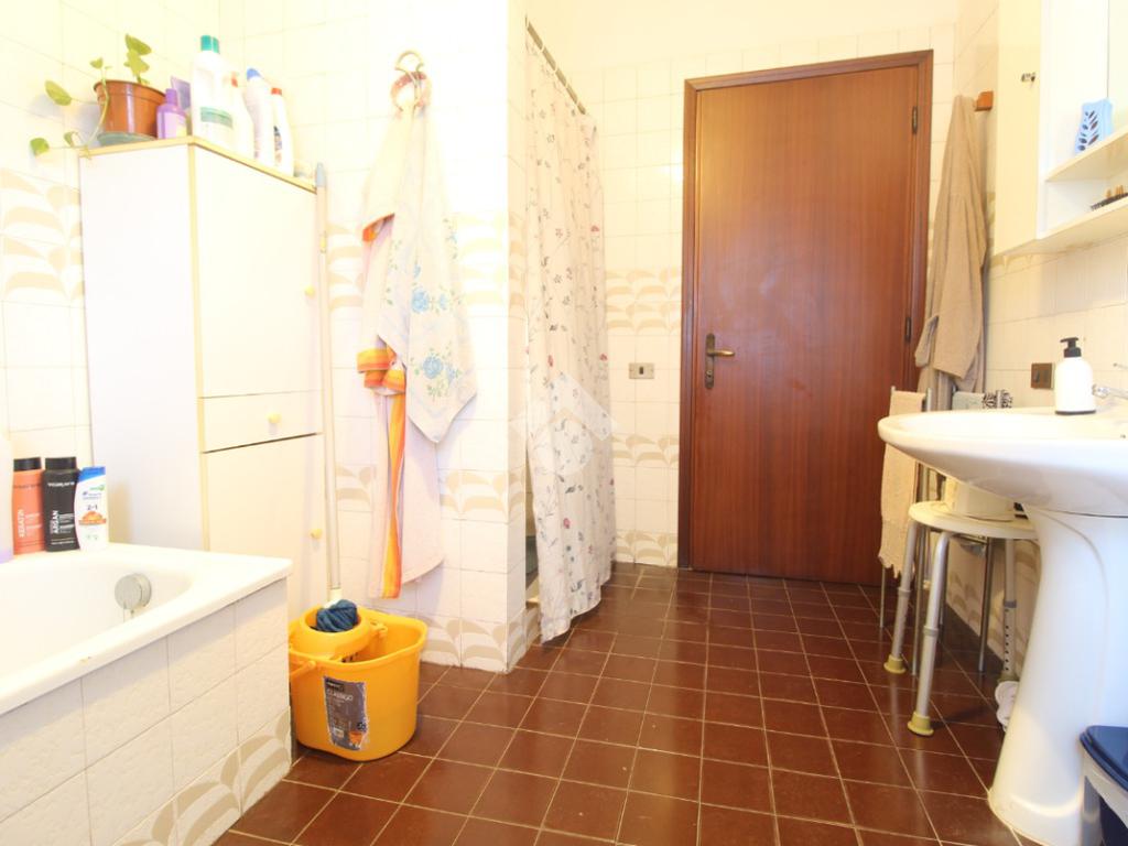 Proseguendo al piano rialzato, troviamo la zona giorno, con un soggiorno, una cucina abitabile ed un bagno dotato sia di vasca che di doccia.