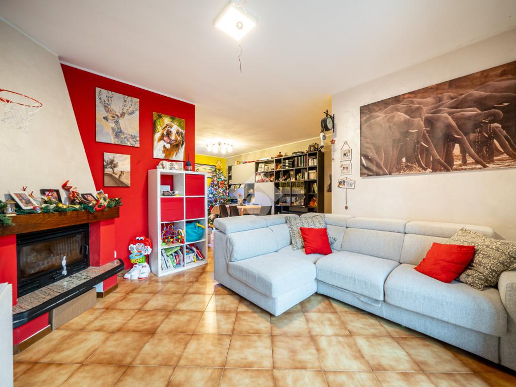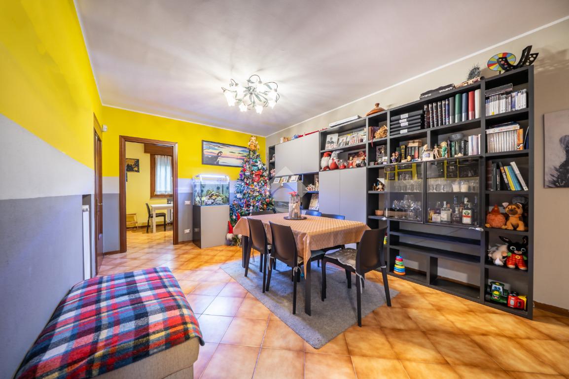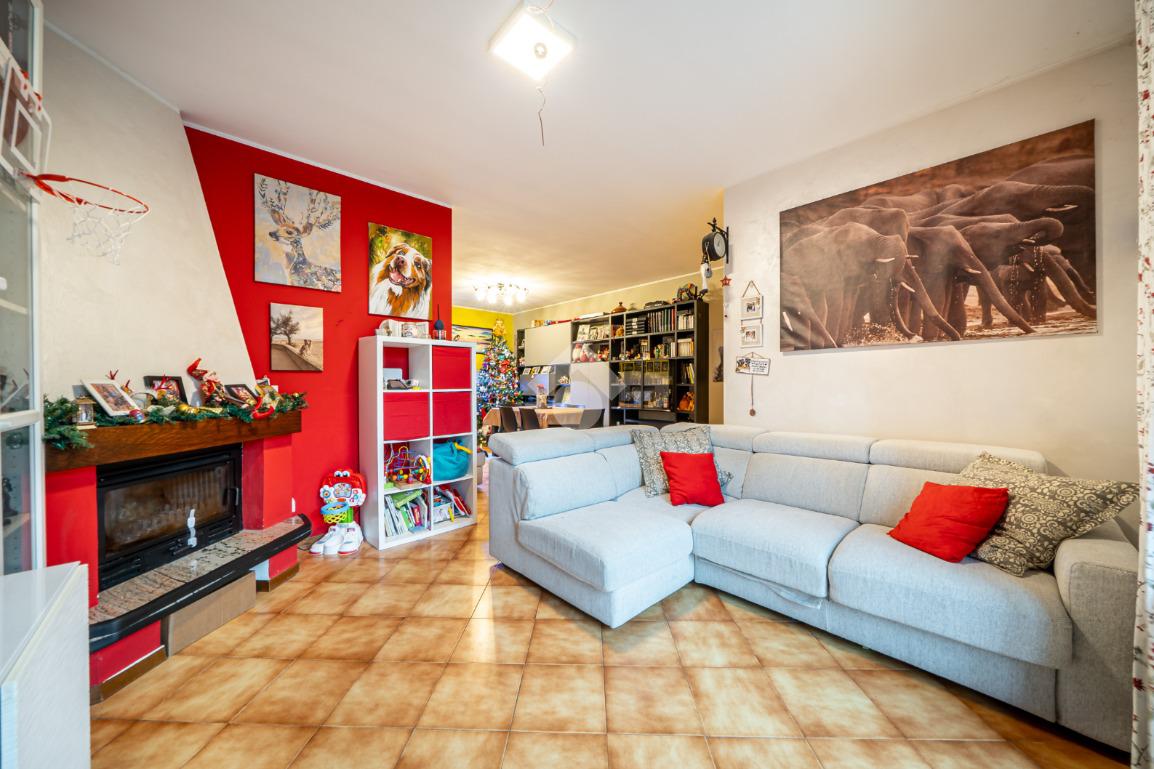 Accogliente e luminosa zona living composta da soggiorno con camino, ideale per momenti di relax, e cucina abitabile, perfetta per la vita quotidiana e la convivialità.